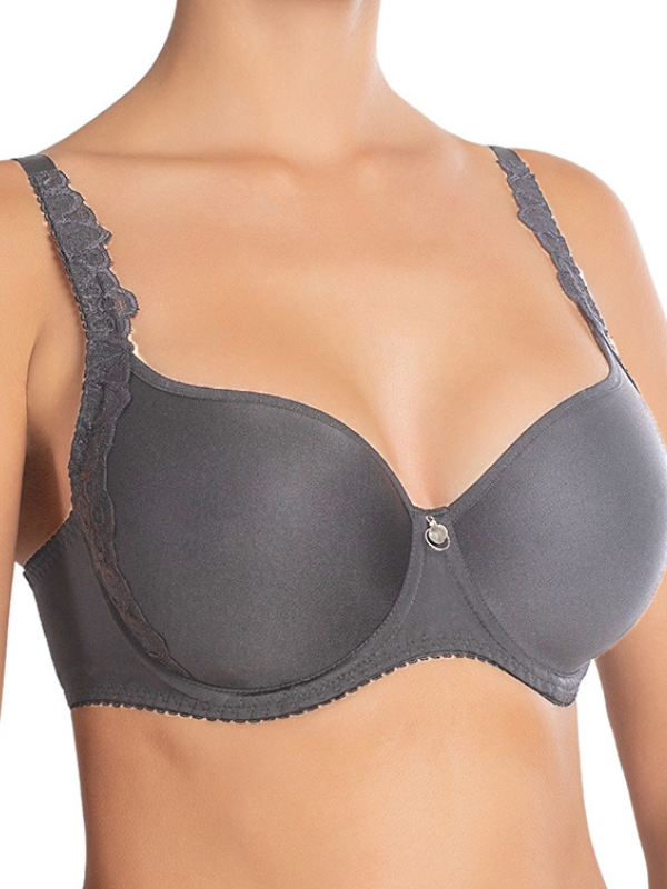 Sujetador con aros y una capa fina de espuma tipo spacer que deja que la piel transpire, con copa sin costura que no marca debajo de la opa ideal para ropa ajustada, hecho de microfibra suave color beige rosado con tirantes mas anchos resistentes al estiramiento y deformación. Parte trasera de encaje con tirantes ajustables en altura y cirre con ganchos.