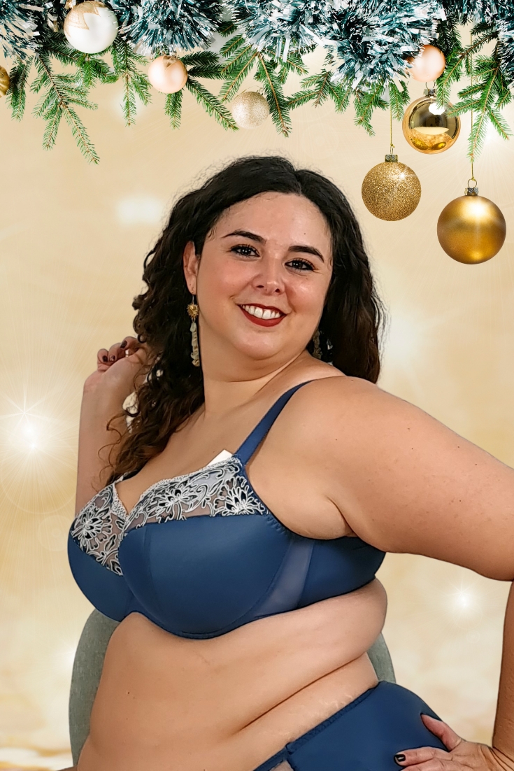 Bonita braga azul marino combinado con bordado blanco en los dos laterales. Forro 100% de algodón entrepiernas. 30582
