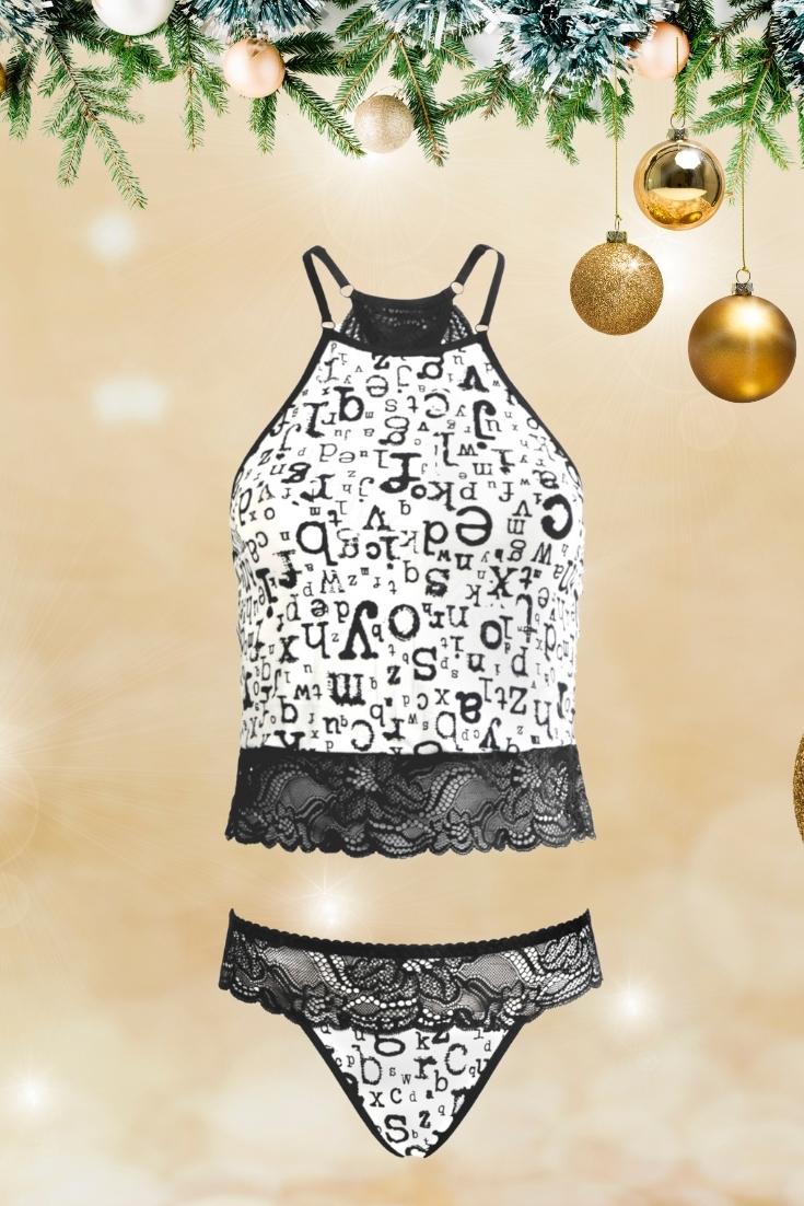 Nueva colección !!! Conjunto de camiseta + tanga hecha de viscosa color estampado de letras, un tejido muy suave y agradable al tacto. Escote tipo halter con tirantes ajustables. Combinado con encaje ... SKM006 Editado el 30/08/2019