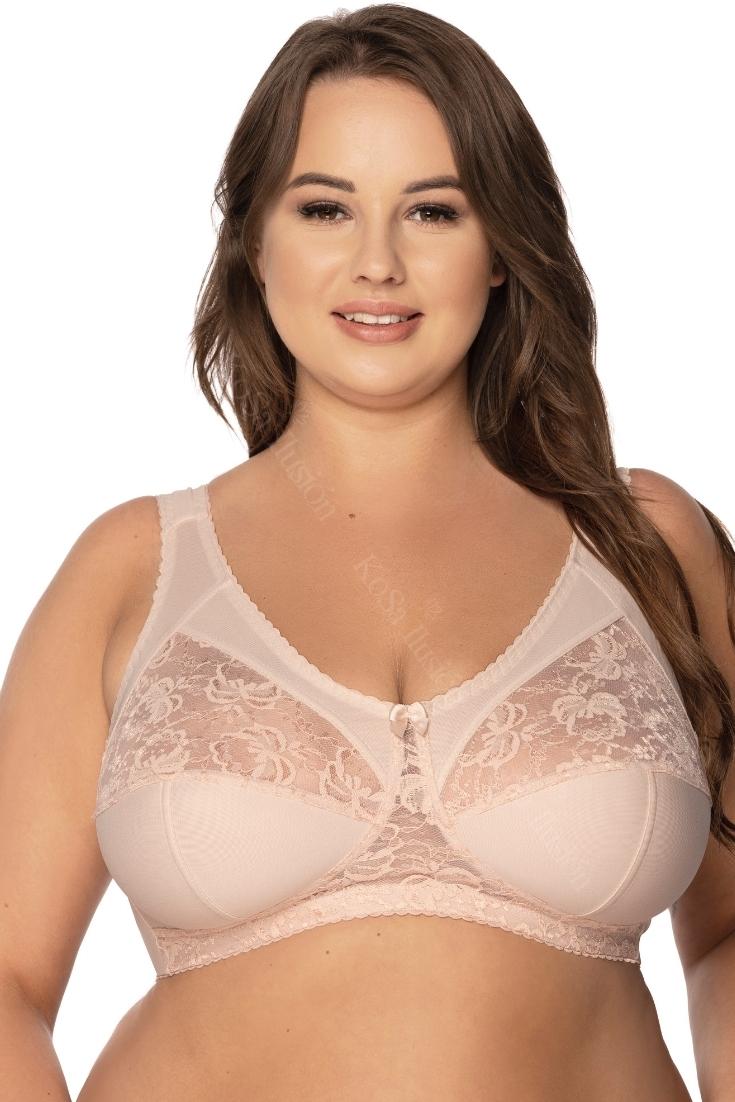 Sujetador sin aros y sin relleno hecho de lycra fuerte combinado con encaje totalmente forrado para una perfecta sujeción. construcción con corte lateral que recoge el pecho desde la axila, tirantes acolchados que aportan máximo confort, ancho en los laterales y espalda. Cierre con ganchos en 3 ajustes.